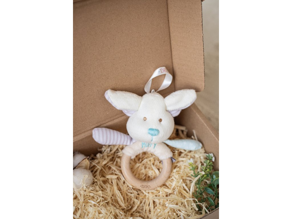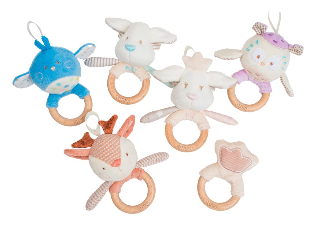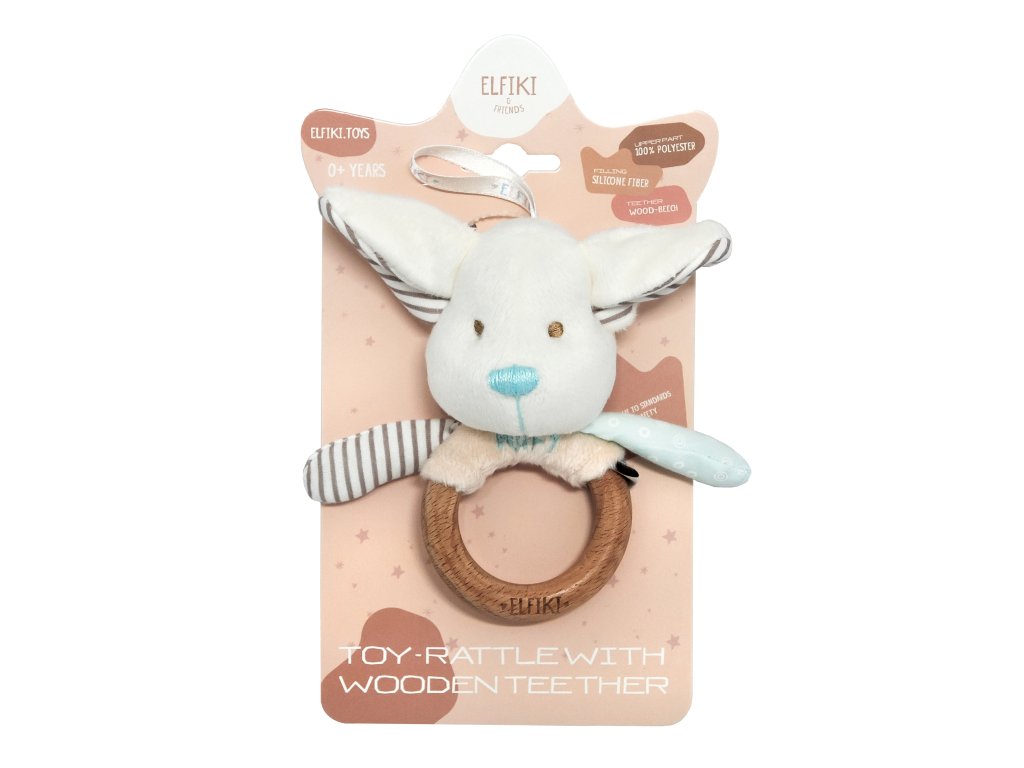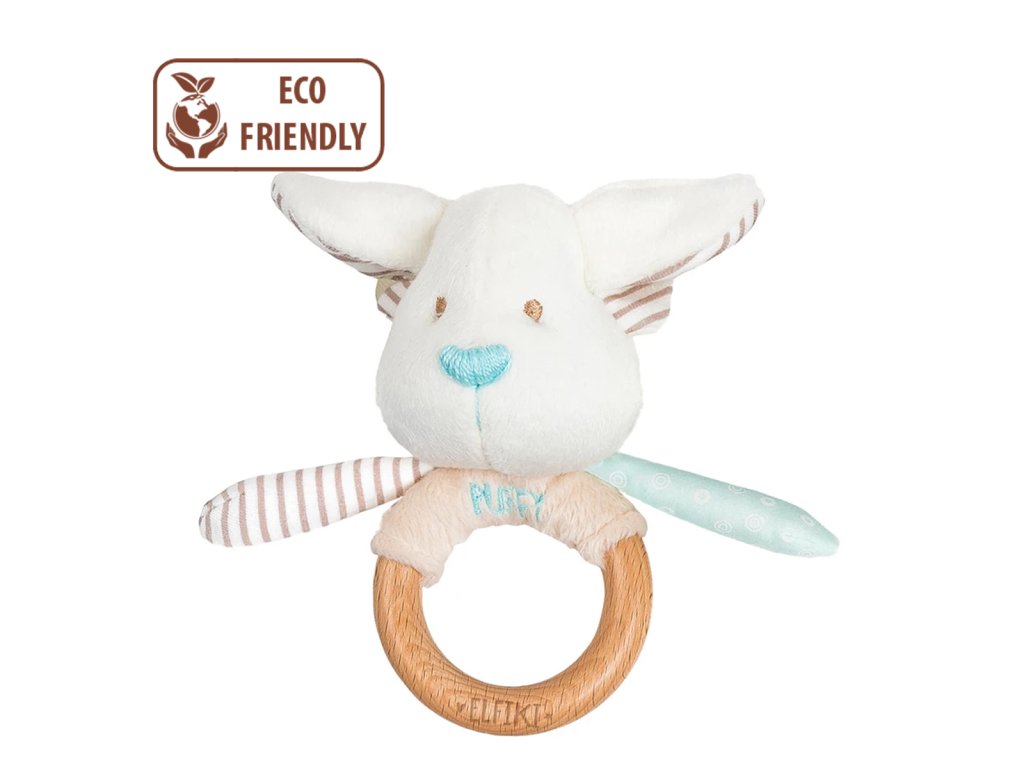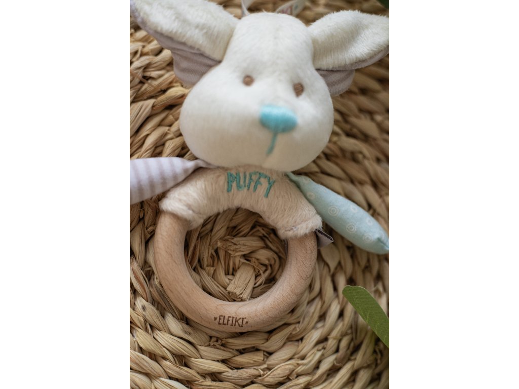 ELFIKI EKO FRIENDLY MĚKOUŠCI Chrastítko s dřevěným kousátkem Elf Puffy