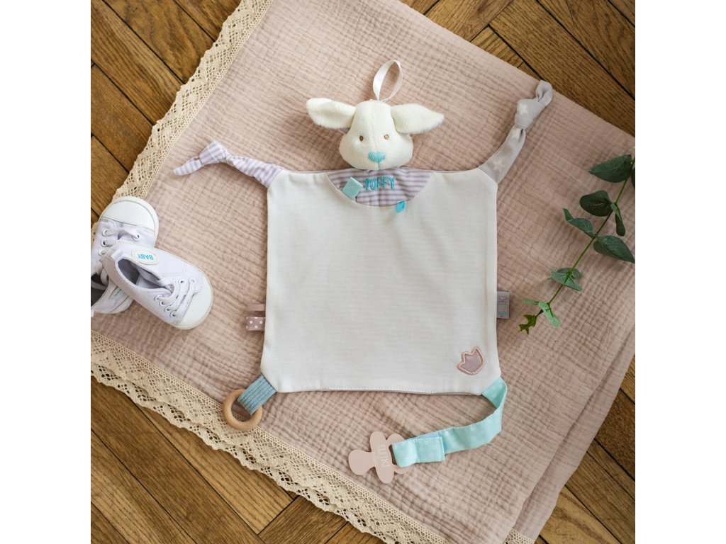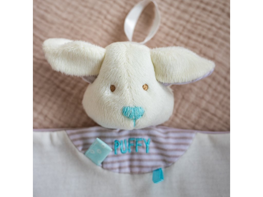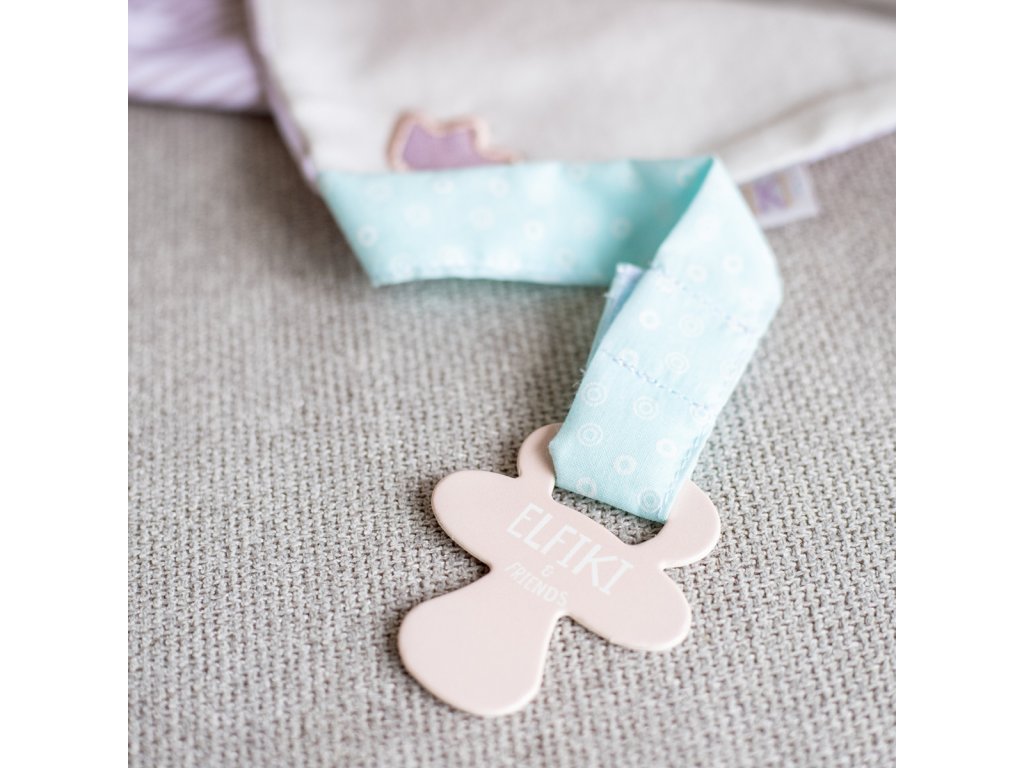 Textilní hračka usínáček elf Puffy je součástí kolekce ekologických hraček. Je vyrobený z vysoce kvalitních a hypoalergenních materiálu, jsou příjemné na dotek a přinášejí radost z mazlení. Usínáček, někdy nazývaný také "mazlík" nebo "sníček" je mazlivá hračka pro příjemnější usínání vašeho miminka už od narození. Tato multifunkční vzdělávací hračka je také ideální pro první hry miminka, kdy ho povzbuzuje k pohybům a tím podporuje rozvoj hmatových vjemů a jemné motoriky. Dřevěný kroužek z kvalitního bukového dřeva skvěle poslouží jako kousátko. Díky ergonomickému tvaru dřevěného kroužku jej miminko může pohodlně uchopit do malé ručičky a snadno držet. K usínáčku je možné uchytit dudlík vašeho miminka. Další výhodou je, že usínáček vytváří uklidňující a relaxační atmosféru před usnutím novorozeného miminka. Doporučuje se položit usínáčka blízko miminka při usínání i během kojení. Látka dobře absorbuje vůni maminky a tak se miminko cítí bezpečně v postýlce nebo kočárku, protože přirozená vůně maminky je nablízku. Kombinace různých textur a materiálů podporuje rozvoj hmatu a jemné motoriky. Hračka je snadno pratelná, rychle schne a je naprosto bezpečná pro miminka od narození.
