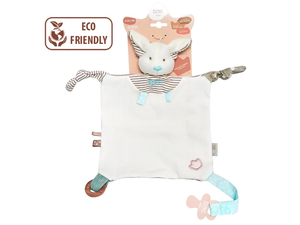 Eko hračky ELFIKI se stanou nejlepšími kamarády vašeho miminka od prvních dnů jeho života. Během prvních měsíců života se miminka seznamují s okolním světem. Kouzelný elf Puffy vyvolá neustálý úsměv a na dlouhou dobu upoutá pozornost vašeho miminka. Miminko bude rádo trávit čas prohlížením všech detailů a se zájmem studovat svého kamaráda. Hračka je zcela bezpečná pro miminka od narození. K dispozici je 6 druhů: elf Puffy, elfinka Aili, srnka Ruby, lama Sammy, sova Mia a ptáček Pipo. Usínáček elf Puffy bude příjemným kamarádem vašeho miminka při usínání i probouzení.
