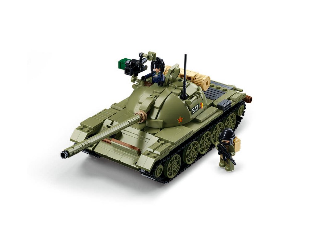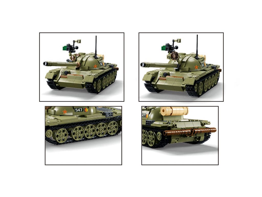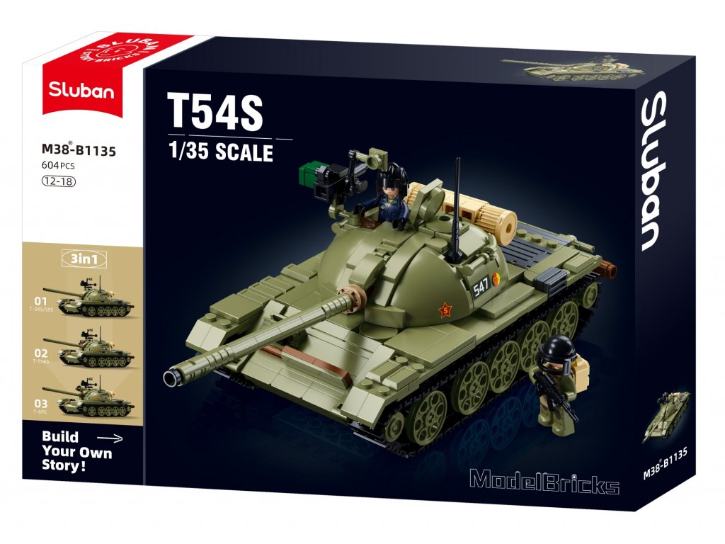 Stavebnice Sluban Army Model Bricks M38-B1135 Střední Tank T54S 3v1 v měřítku 1:35 vám umožní sestavit model ve třech různých verzích: T-54S/59S, T-55AS a T-69S. Každá z těchto verzí představuje různé varianty výzbroje užívané v různých obdobích.