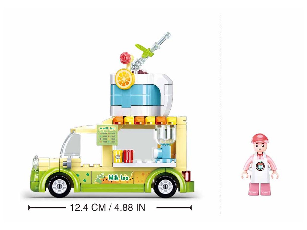 M38-B0993C Mobilní Smoothie stánek je krásná stavebnice ze série Girl's Dream. Vůz se stánkem je po sestavení dlouhý více než 12cm. Součásti stavebnice je figurka, tištěný návod a nálepky. Stavebnice je vhodná pro holky od 6 do 10 let.