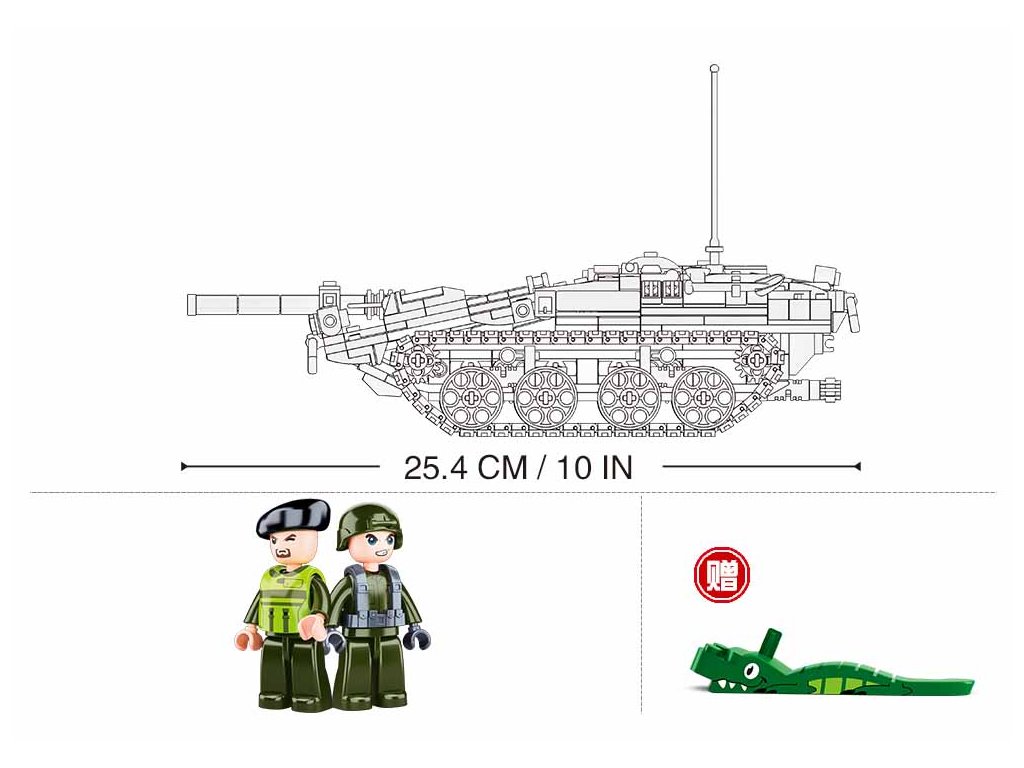 M38-B1010 STRV103 Hlavní bitevní tank je stavebnice z kolekce Army Model Bricks. Model tanku je po sestavení dlouhý více než 25cm a součásti jsou i dva vojáci. Stavebnice je vhodná pro děti od 8 do 14 let.