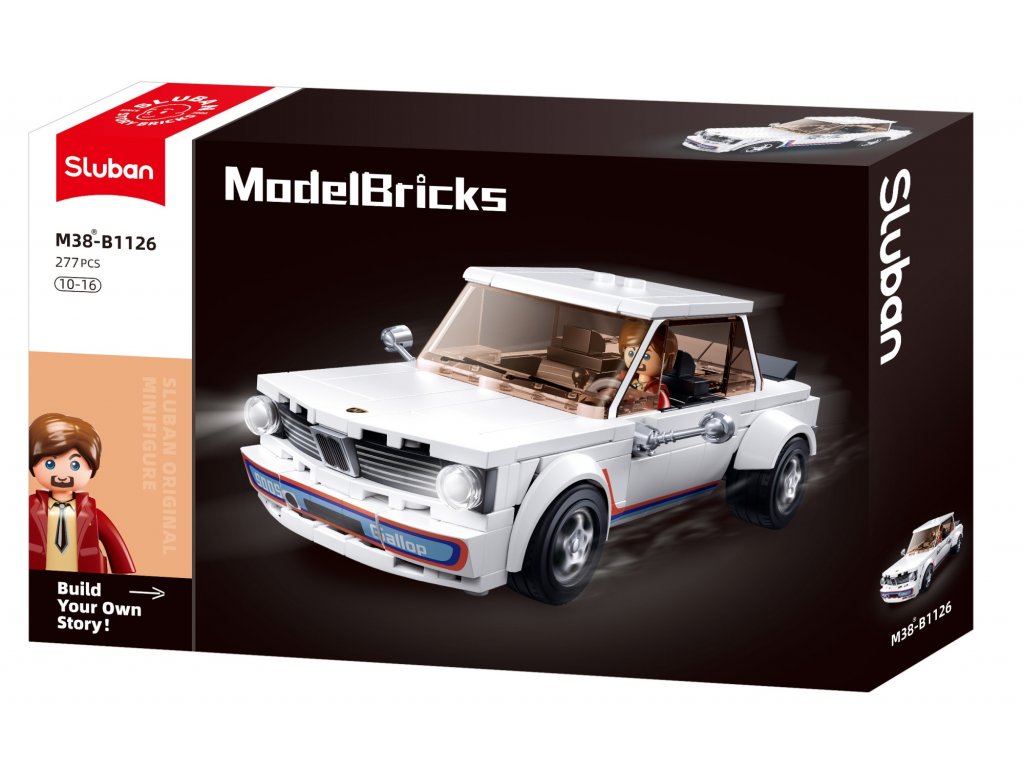 Sluban Model Bricks M38-B1126 Klasický vůz model 2002 je skvělým přírůstkem do kolekce sportovních modelů od Sluban, přinášejícím nostalgie a elegance klasického designu automobilů. Tento model, inspirovaný ikonickým BMW 2002, je oslavou automobilové historie, která zaujme nejen milovníky klasických vozů, ale i všechny příznivce kvalitních stavebnic. V bílé barvě a s typickými čistými liniemi představuje tento model dokonalost v jednoduchosti a elegance, která definovala vzhled automobilů 70. let. Jeho kompaktní tvar a nízký, široký postoj mu dodávají sportovní vzhled, zatímco rovné linie a okrouhlé přední světlomety podtrhují jeho klasickou krásu. Zadní část vozu s obdélníkovými zadními světly a minimalistickým designem nárazníku zdůrazňuje jeho eleganci. Délka modelu po sestavení je 16 cm a je doplněn o figurku řidiče.