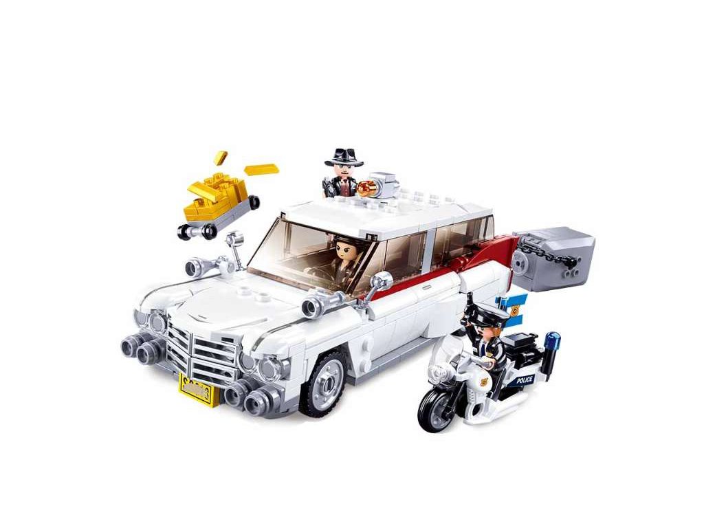 M38-B1099 Americký vůz pro lupiče je stavebnice z kolekce Sluban Model Bricks. Úspěšná loupež za bílého dne je velmi obtížná a často vyžaduje tým profesionálů s rychlým vozem. Jak dopadne tato honička dvou zlodějů, kteří vlečou právě ukradený sejf plný zlata? Dopadne je policista na své motorce? Vůz je po sestaveni dlouhý více než 20cm. Stavebnice obsahuje tři figurky, tištěný návod a nálepky.