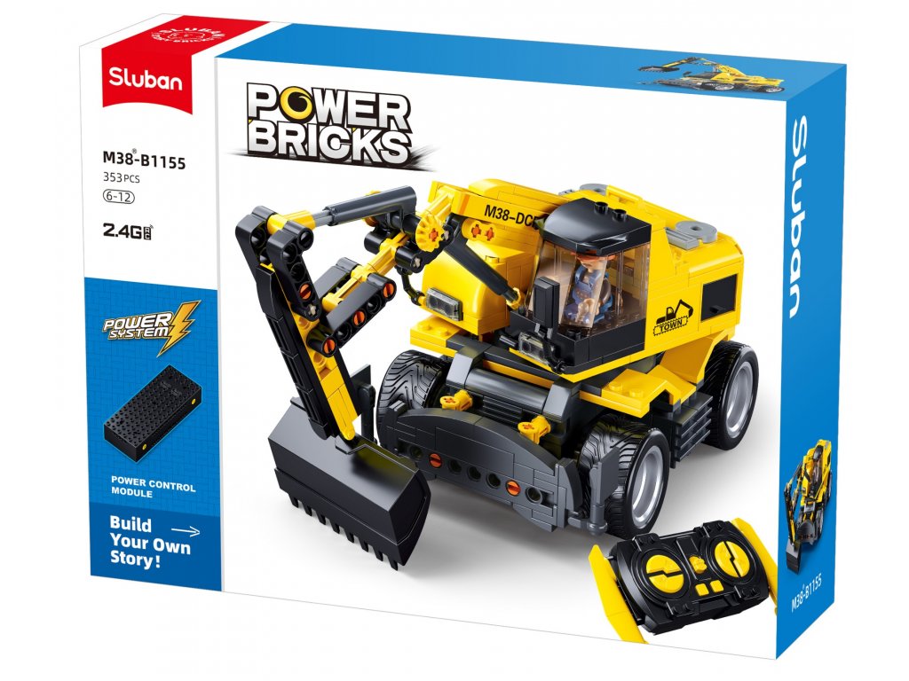Sluban Power Bricks M38-B1155 R/C Kolové rypadlo E7 na dálkové ovládání